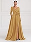 A-linje Kvälls klänningar Elegant Formell klädsel Formell Bröllop Golvlång 3/4 ärm V-hals Ficka Satäng med Ficka 2025