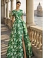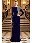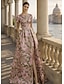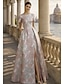 Åtsmitande Golvlång Pärlbroderad Formell klädsel Klänning för brudens mor Kvälls klänningar Balklänning med överkjol Formell klädsel Elegant Glittriga Blommig 3/4 ärm Kavajslag Bröllop Formell Caper