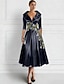 A-linje Telång Pärlbroderad Formell klädsel Klänning för brudens mor Cocktailklänningar Festklänningar Elegant Färgblock 3/4 ärm Prydd med juveler Alla hjärtans dag Formell Satäng med Glitter