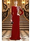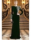 Åtsmitande Golvlång Pärlbroderad Formell klädsel Klänning för brudens mor Kvälls klänningar Balklänning med överkjol Formell klädsel Elegant Glittriga Silkig 3/4 ärm Kavajslag Bröllop Formell Caper