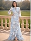 A-linje Golvlång Kvälls klänningar Elegant Blommig Kortärmad Över axeln Trädgårdsfest Bröllop Ficka Satäng med Blomtryck