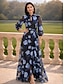A-linje Golvlång Telång Cocktailklänningar Elegant Vintage Blommig Kortärmad V-hals Trädgårdsfest Bröllop Ficka Satäng med Blomtryck Plisserat Ficka