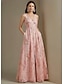 A-linje Golvlång Blommig klänning Kvälls klänningar Elegant Blommig Ärmlös V-hals Trädgårdsfest Bröllop Ficka Spets Organza Djupt ringad rygg med Blomtryck Plisserat Applikationsbroderi