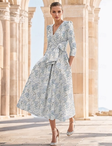 A-linje Ankellång A linjeklänning Blommig klänning Cocktailklänningar Festklänningar Elegant Vintage Halvlång ärm V-hals Bröllop Formell Jacquard med Fjäril Ficka