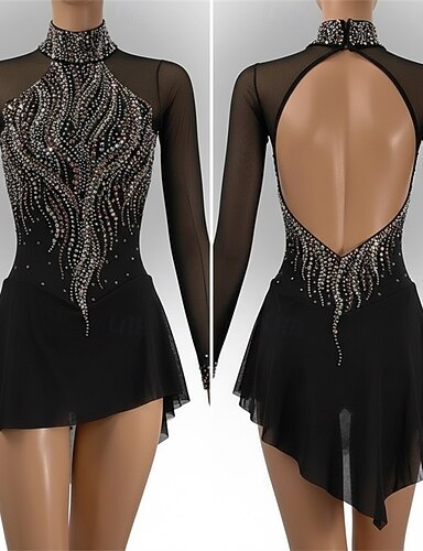 Klänningar till konståkning Dam Skridskor Klänningar Svart Lappverk Öppen Rygg Elastisk Träning Tävling Skridskoplagg Klassisk Kristall / Strass Stenar Långärmad Skridskoåkning Konståkning