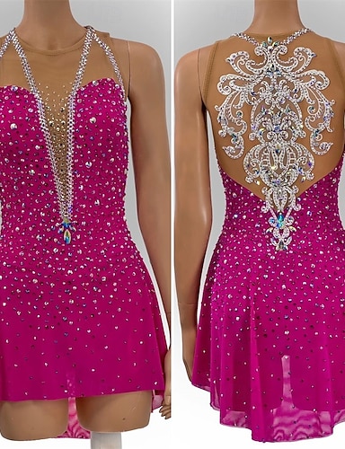 Klänningar till konståkning Dam Flickor Skridskor Klänningar Fuchsia Tummen halofärgning Hög Elasisitet Professionella Tävling Skridskoplagg Håller värmen Kristall / Strass Stenar Långärmad