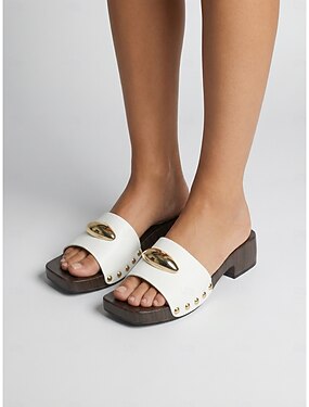 Damsandaler med fyrkantig tå, glod - minimalistiska slip-ins med låg kitten klack för resorter vid poolen och lyxhotell &sommarsemester avkoppling