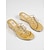 damsandaler med flip flop i guld – glänsande metalliska strandrutschbanor för sommarsemester, resor och fritidskläder