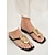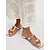 bruna sandaler i konstläder för kvinnor – elegant utsmyckad rem, skor med öppen tå för avkoppling vid poolen för kvinnor, sommarsemester och tillfälliga ärenden