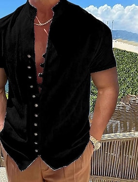 Herr Shorts Linne Shorts Sommarshorts Beach Shorts Knappar Snörning Elastisk midja Slät Komfort Andningsfunktion Knelängd Utomhus Dagligen Strand Semester Mode Svart Vit Microelastisk
