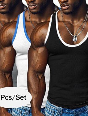 Herr Linne Undertröjor Ärmlös tröja Muskelskjorta Ärmlös U-hals Djup U-hals Rundhals Sommar Färgblock Pit Strip Mode Designer Sportig 3 st Färgblock Flerpack Utomhus Ledigt Utekväll Svart + Svart