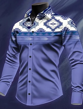 Herr Aztek Etnisk Indisk kultur Skjorta Västerländsk skjorta Cowboyskjorta Långärmad Vintage retro Utomhus Semester Vår Höst Nedvikt 3D-utskrift Linne som skjorta Ljuslila Purpur Orange Grön Mörkblå
