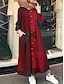 Dam Rubinrött Marinblå Brun Sommar Vår Höst Maxiklänning Bomulds Blanding Vardagsklänning Swingklänning Ledigt vardag Ledigt Gatustil Dagligen Utomhus Helgdag Lös passning Rutig Rund hals