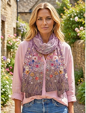 Damsjal i polyester med shamrockmotiv, ventilerande chiffongmaterial, grönt klövermönster, perfekt för St. Patricks Day och vardagskläder