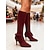 Damstövlar i vinröda mocka med rosettdetaljer över knäna – snygga och eleganta, perfekta för fester, formella tillfällen och vintertillfällen