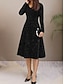 damer manchesterklänning midiklänning shiftklänning casual bohemisk kontor daglig helgdag enfärgad långärmad slag svart ljusbrun brun höst vinter