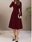 Julens kvinnors midi-klänning A-linjeformad klänning avslappnad semi-formell semester vanlig passform enfärgad 3/4-lång ärm fyrkantig hals vinröd grön vinter