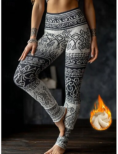 Kvinnors Viking Boho Leggings Semester Vintage Etnisk Stil Hela Längd Hög Midja Grafisk Geometrisk Mönster Snabbtorkande Andningsförmåga Mjuk Stretchig Formell Semester Vit Vår Höst Vinter Slim Fit