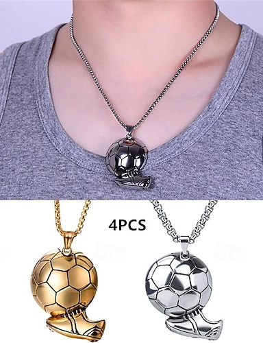 4 st fotbollshalsband för män och pojkar, smycken med fotbolls- och skohängen i rostfritt stål, sporthalsband för tonåringar, guld- och silverfärger, 4 st