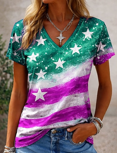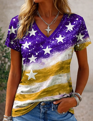 Dam T-shirt Mönster Grafisk Fotbollslag Stylish Klassisk Ledigt Kortärmad Rund hals Vanliga toppar Ledigt Dagligen Blå Gul Rodnande Rosa Sommar Vår
