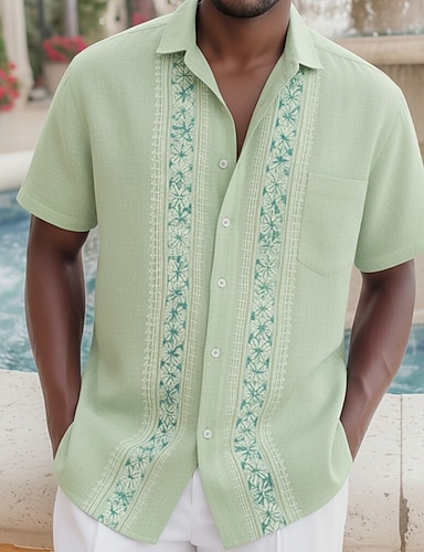 Herr Blomtryck Etnisk Skjorta Guayabera skjorta Knapp upp skjorta Kortärmad Vintage retro Ledigt / vardag Strandsemester Sommar Nedvikt 3D-utskrift Främre en ficka Linne som skjorta Blå Rodnande Rosa