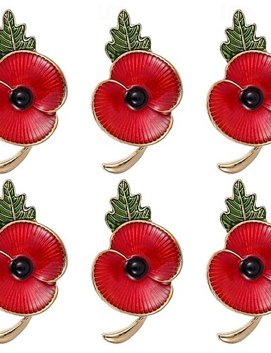 6 st utsökta broscher för minnesdagen, nål med röd vallmoblomma och emalj, minnesmärke för att inte glömma, smycken för patriotiska veteraner