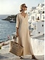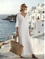 Dam Midiklänning Linne Klänning Vardagsklänning Elegant Mode Modern Utomhus Semester Utekväll Normal Slät Halvlång ärm V-hals Vit Sommar Vår