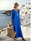 Dam Maxiklänning Skiftklänning Sommarklänning Ledigt Lös passning Slät Kortärmad V-hals Blå Svart Vit Rubinrött Sommar Vår