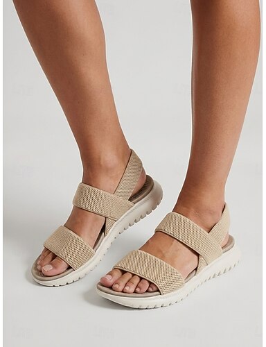 Damsandaler i mandelfärgad komfort – stretchiga stickade elastiska remmar, lätta slip-on-skor med stöd för hålfoten för sommar och resor &vardagskläder