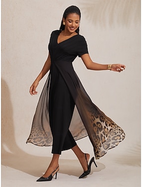 chiffongstickad gradient leopardmönster böljande elegant jumpsuit semester fest