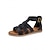 kvinnors svarta gladiator platta sandaler | sommarskor med strappy ankel omlott för strand- och fritidskläder