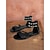 Svarta platta sandaler med remmar för kvinnor - eleganta bohemiska sandaler med bur och fotledsrem för ö-resor, kryssningssemestrar &tropiska sommarresor