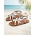 kvinnors bohemiska bruna pärlstavssandaler med t-remmar med blomdekor, perfekta för avslappnade sommarutflykter och strandkläder