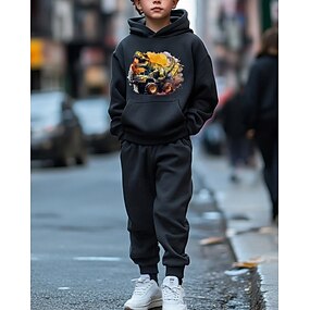Pojkar 3D Grafisk Spel Huvtröja & träningsbyxor Set Sportdräkt Träningsoveraller Långärmad Höst Vinter Dagligen Grundläggande Ledigt Barn 4-12 år Huva Utomhus Semester Sport Skräddarsydd passform