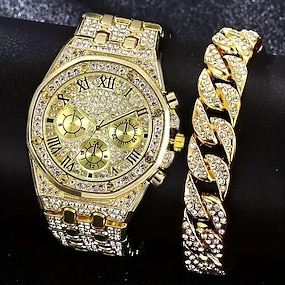Kvarts klocka för män manlig hip hop full diamant lyxig rostfri stål klocka män analog kvarts armbandsur present pojkvän
