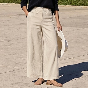 Dam Långbyxor Manchesterbyxor Casual byxor Sommarbyxor Semester Mode Ledigt vardag Fullängd Medium Midja Ensfärgat Slät Ficka Komfort Mjuk Andningsfunktion Microelastisk Dagligen Utomhus Streetwear