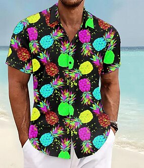 Herr Grafiska tryck Öl Löv Skjorta Hawaii skjorta Aloha skjorta Kortärmad Tropisk Mode Hawaiisk Gata Ledigt Hawaiisk Sommar Vår Nedvikt Mönster Button-Down Gul Rodnande Rosa Armégrön Marinblå Blå