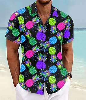 Herr Kokosnötsträd Tropiska växter Skjorta Hawaii skjorta Knapp upp skjorta Kortärmad Hawaiisk Tillflykt Semester Helgdag Standkläder Sommar Nedvikt 3D-utskrift krage skjortor Främre en ficka Blå Grön