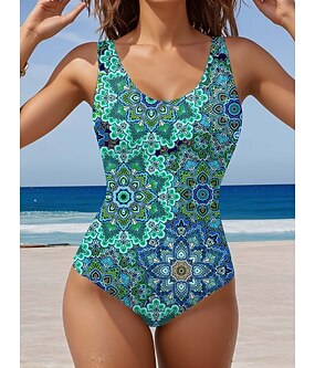 Kvinnors enstyckad baddräkt slimmad boho monokini rygglös mage kontroll hög midja smal semester strandkläder ombre U-hals ärmlös baddräkter