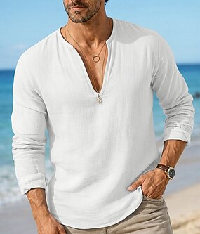 Herr Skjorta Linneskjorta Sommarskjorta Standkläder Knapp upp skjorta Slät Ledigt Dagligen Svart Vit Rodnande Rosa Armégrön Långärmad Krage Sommar Vår & sommar Kläder Slät