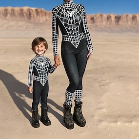 familj Halloween Jumpsuit Dödskalle Halloween mönster Gata Mönster Silver Svart Rubinrött Långärmad Matchande kläder