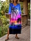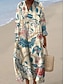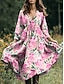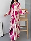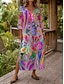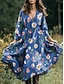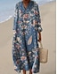 Dam Maxiklänning Skiftklänning Ledigt Dagligen Utekväll Lös passning Blommig Grafisk Långärmad V-hals Blå Rubinrött Beige Sommar Vår
