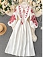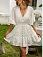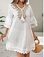 Dam Mini klänning A linjeklänning Sommarklänning Ledigt Dagligen Normal Slät 3/4 ärm V-hals Vit Sommar Vår Höst