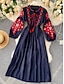 Dam Midiklänning A linjeklänning Ledigt Utomhus Utekväll Normal Blommig 3/4 ärm V-hals Blå Svart Vit Sommar Vår