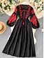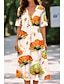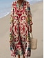 Dam Midiklänning Vardagsklänning Klänning med tryck Vintage afrikansk Dagligen Strand Helgen Normal Blommig Grafisk 3/4 ärm Rund hals Gul Rubinrött Orange Vår Höst