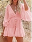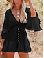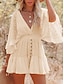 Dam Mini klänning A linjeklänning Semester Ledigt Utomhus Utekväll Normal Ensfärgat 3/4 ärm V-hals Svart Vit Rodnande Rosa Beige Sommar Vår