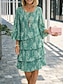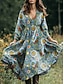 Dam Midiklänning Vardagsklänning Långärmad Boho klänning Blommig klänning Elegant bohemliv Ledigt Hem Datum Normal Blommig Grafisk Ditsy Floral Kortärmad V-hals Blå Grön Beige Sommar Vår Höst