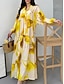 Dam Maxiklänning Solklänning Skiftklänning Semester Ledigt Strand Utekväll Lös passning Grafisk Geometrisk Abstrakt Långärmad V-hals Gul Orange Mörkblå Sommar Vår Höst