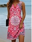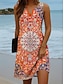 Dam Mini klänning Skiftklänning Solklänning Semester Ledigt Boho Dagligen Helgdag Utekväll Normal Grafisk Stam Ärmlös Naggad hals Blå Rubinrött Orange Grön Sommar Vår
