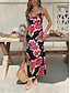 Dam Maxiklänning Sheath Dress Slipklänning Ledigt Utomhus Utekväll Smal passform Blommig Ärmlös Smala axelband Svart Sommar Vår